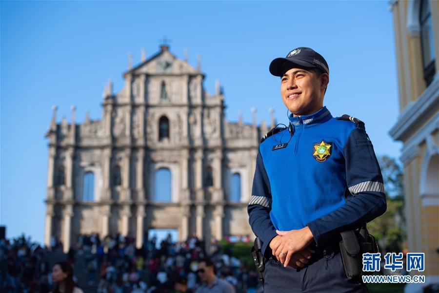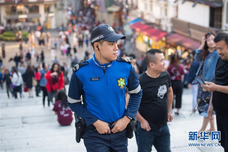 11月28日,澳門治安警察局旅游警察關(guān)天恒在大三巴牌坊附近巡邏,他已經(jīng)工作了2年,主要負(fù)責(zé)維持社會治安及解答游客問題。 新華社記者 張金加 攝