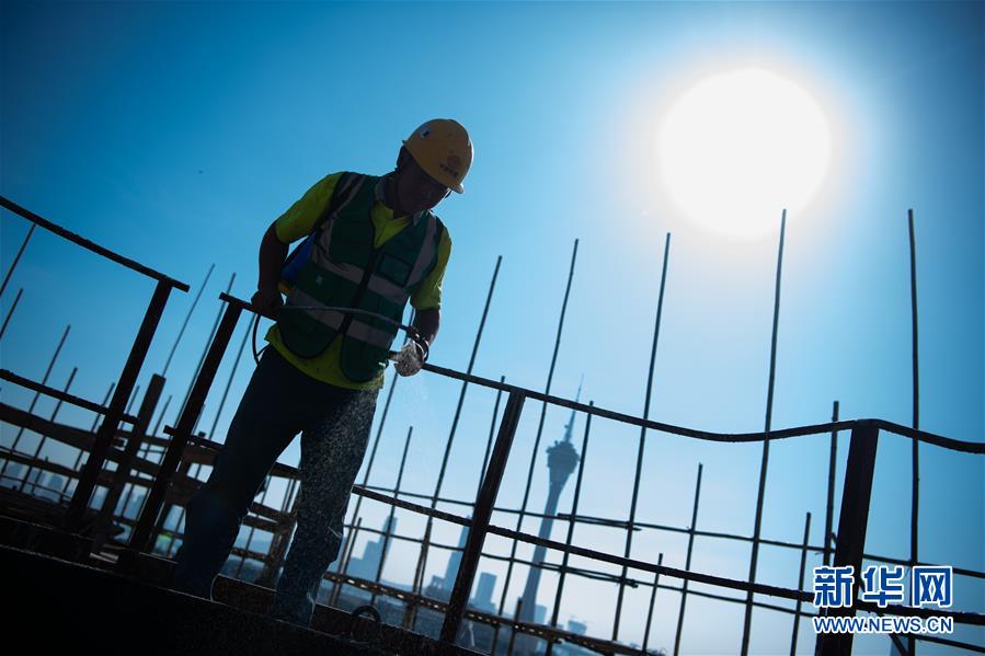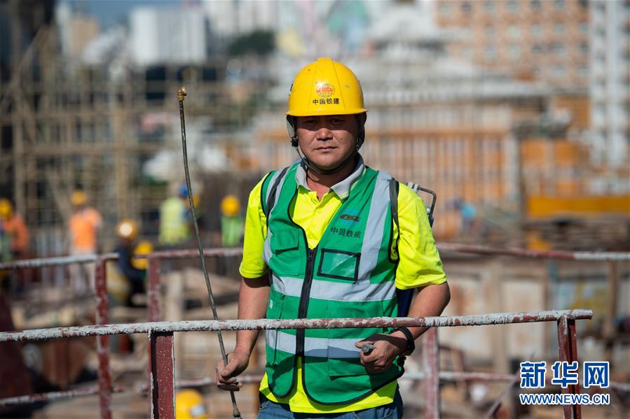 11月22日,澳門工地工人何錦在工地上,他已經(jīng)工作了25年,主要負(fù)責(zé)處理工地事項。 新華社記者 張金加 攝