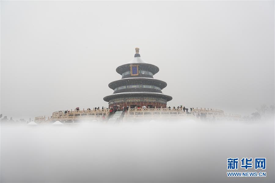 12月16日拍攝的雪中的天壇公園祈年殿。當日,北京迎來降雪天氣。新華社記者鞠煥宗攝