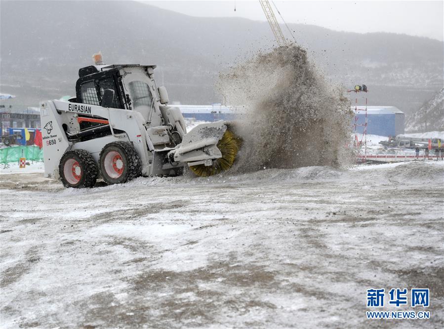 圖為一臺(tái)掃雪車(chē)在國(guó)家跳臺(tái)滑雪中心工作(攝于12月10日)。新華社記者畢明明攝