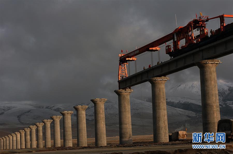 青藏鐵路在施工建設(shè)中(2005年5月15日攝)。新華社記者覺(jué)果攝