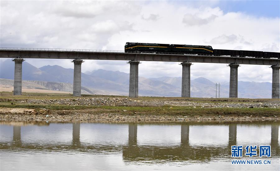 列車行駛在青藏鐵路上(6月10日攝)。新華社記者覺果攝