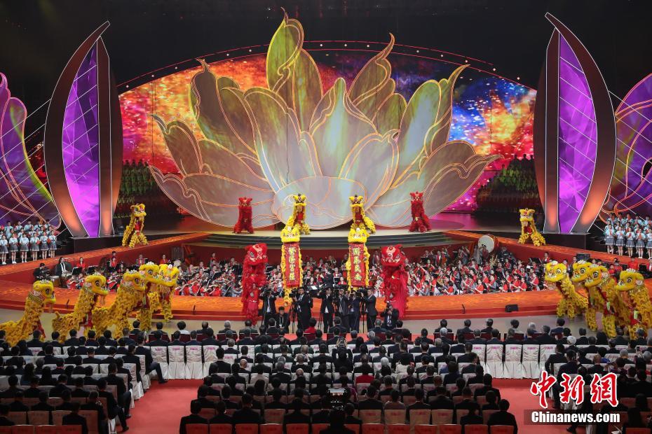 12月19日晚,慶祝澳門回歸祖國20周年文藝晚會在澳門東亞運(yùn)動(dòng)會體育館舉行。圖為《南粵舞獅》。中新社記者謝光磊攝