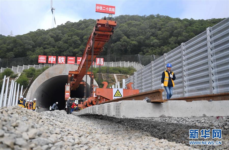 12月22日,中鐵二十四局工作人員在平潭海峽公鐵大橋鋪軌施工現(xiàn)場進(jìn)行鋪軌作業(yè)。新華社記者林善傳攝
