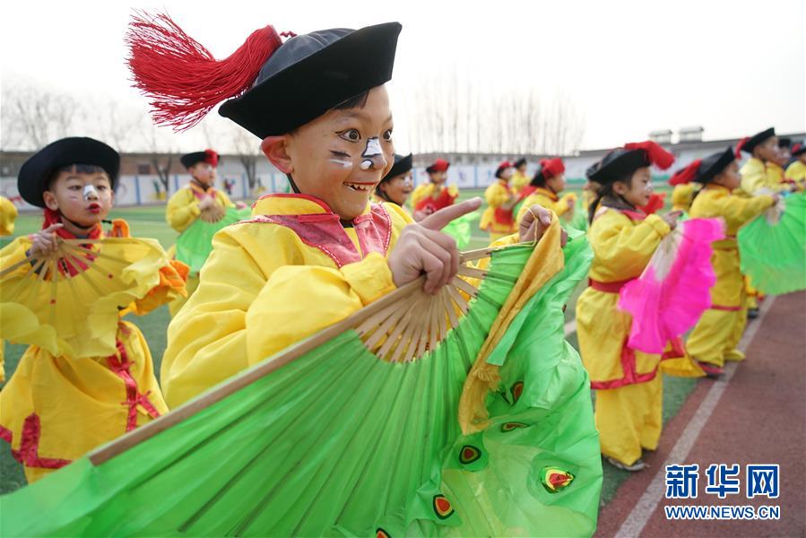 12月19日,河北省灤州市小閆營小學(xué)學(xué)生在排練地秧歌。 國家級(jí)非遺地秧歌是冀東地區(qū)廣為流傳的一種民間藝術(shù)。近年來,河北省灤州市響嘡街道小閆營小學(xué)將地秧歌引入校園,組建學(xué)生興趣社團(tuán),并聘請(qǐng)地秧歌藝人定期為孩子們授課,讓孩子們近距離感受家鄉(xiāng)傳統(tǒng)文化的魅力。 新華社記者 牟宇 攝
