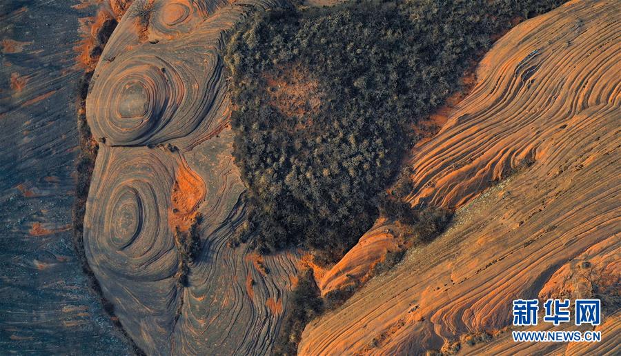 這是12月16日無人機(jī)拍攝的陜西省志丹縣杏河鎮(zhèn)丹霞地貌“螺旋谷”。 在陜西省延安市志丹縣杏河鎮(zhèn)有一片美麗的丹霞地貌,這里山巒起伏,溝壑縱橫,一些紅砂石呈現(xiàn)出大小不同的螺旋狀紋理,讓人嘆為觀止。 新華社記者陶明攝