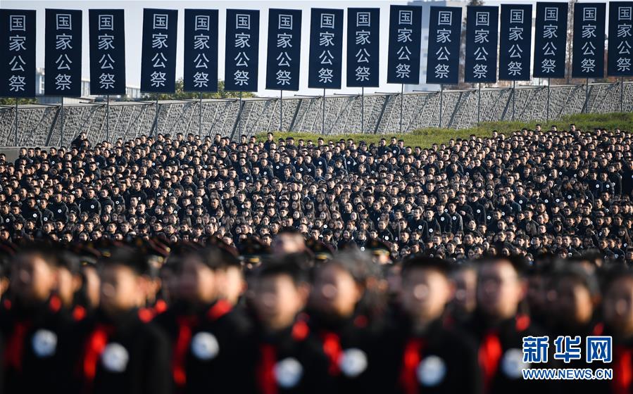 12月13日拍攝的南京大屠殺死難者國家公祭儀式現(xiàn)場(chǎng)。 當(dāng)日是第六個(gè)南京大屠殺死難者國家公祭日,南京大屠殺死難者國家公祭儀式在侵華日軍南京大屠殺遇難同胞紀(jì)念館舉行。 新華社記者 李響 攝