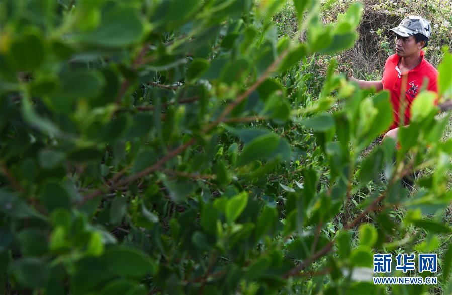 海南清瀾港省級(jí)自然保護(hù)區(qū)護(hù)林員呂詩陽查看保護(hù)區(qū)內(nèi)的紅樹林(12月17日攝)。 新華社記者楊冠宇攝