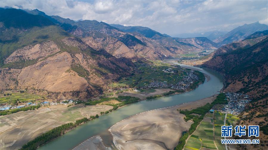 這是無人機(jī)拍攝的“長(zhǎng)江第一灣”(3月17日攝)。“長(zhǎng)江第一灣”位于云南省麗江市玉龍納西族自治縣石鼓鎮(zhèn),萬里長(zhǎng)江從青藏高原奔騰而下,與瀾滄江、怒江一起在橫斷山脈的高山深谷中穿行形成并流的壯麗景觀。金沙江在麗江石鼓鎮(zhèn)突然以急轉(zhuǎn)彎轉(zhuǎn)向東北,形成一個(gè)宛若“V”字形的大轉(zhuǎn)彎,得名“長(zhǎng)江第一灣”。春日里,“長(zhǎng)江第一灣”江水青碧,美景迷人。新華社記者胡超攝