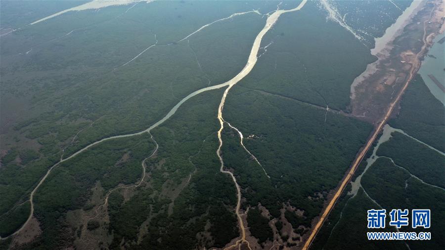12月21日無人機(jī)拍攝的廣西合浦縣黨江鎮(zhèn)更螺圍出??诘奈r塘。冬日,廣西廉州灣海域風(fēng)光別致。新華社記者張愛林?jǐn)z