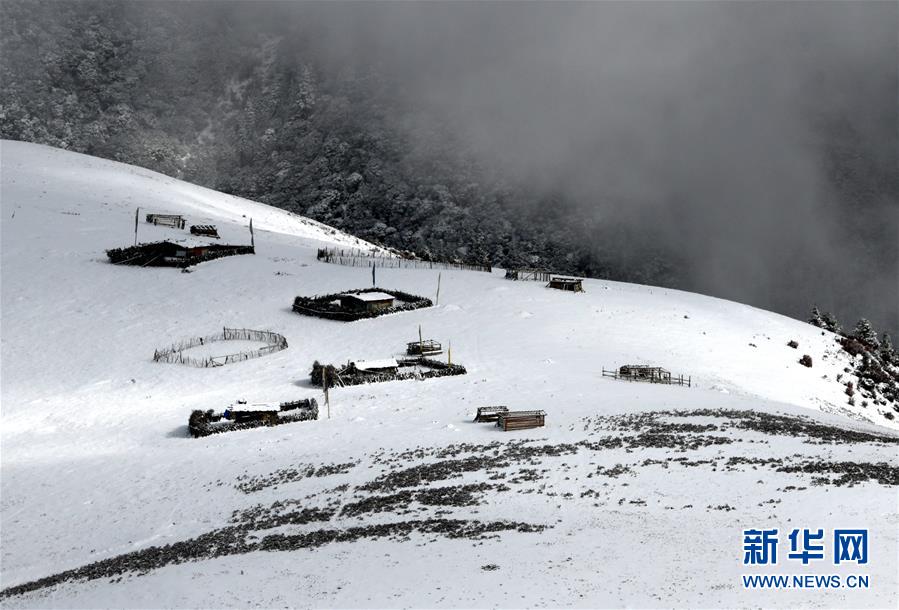 這是318國道剪子彎山段,大雪過后銀裝素裹(10月17日無人機(jī)拍攝)。新華社記者江宏景攝