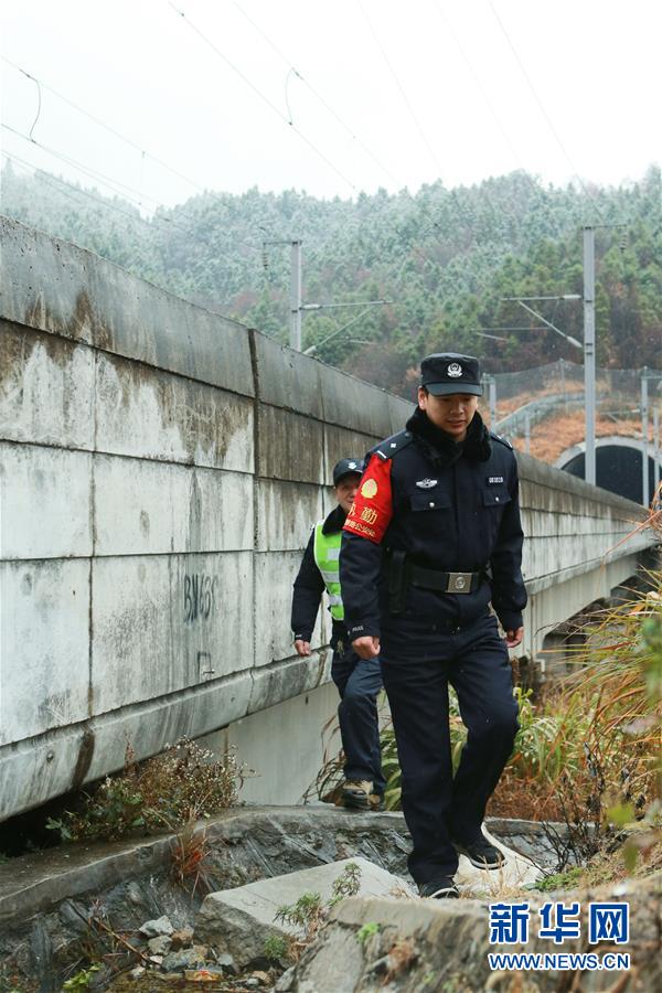 金寨火車站派出所民警鄧成成(右)與王晨旭在站內(nèi)執(zhí)勤(12月19日攝)。新華社記者張端攝