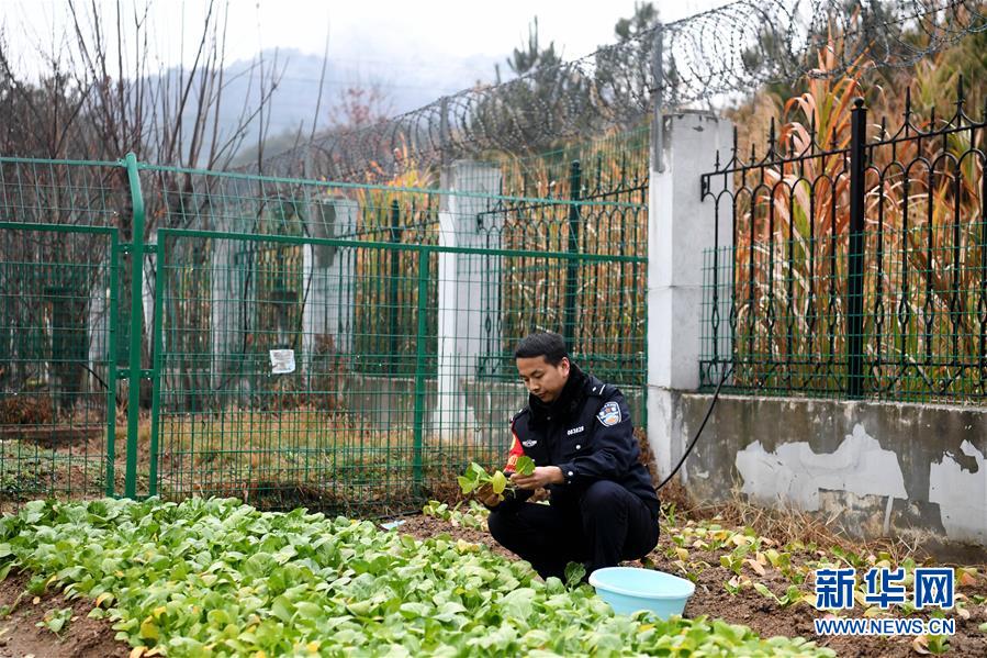 12月18日,常曉龍在菜園摘菜。警務(wù)室位于深山,平時買菜不方便,常曉龍在駐地院子里開墾了一片小菜園。新華社記者劉軍喜攝