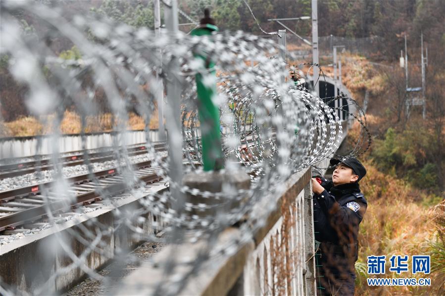 12月18日,常曉龍在排查鐵路沿線護欄的安全隱患。新華社記者陳立群攝