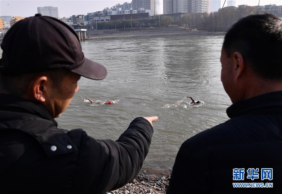 12月20日,市民在岸邊觀看冬泳愛好者游泳。新華社記者賀長山攝