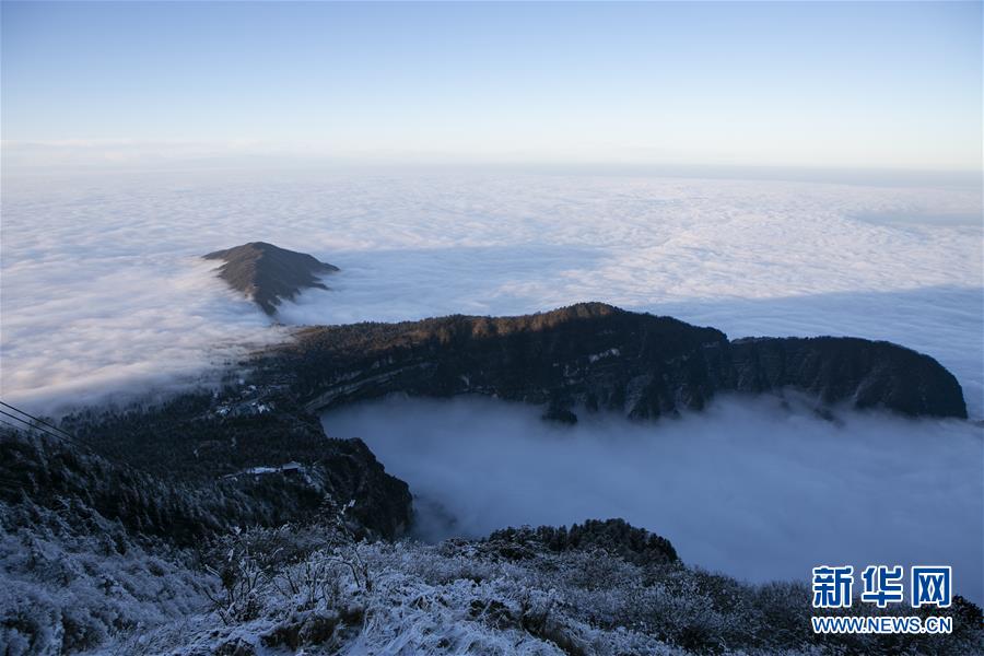 這是12月28日在四川省峨眉山金頂拍攝的景色。時(shí)值冬日,峨眉山銀裝素裹、宛如仙境。新華社記者李夢(mèng)馨攝