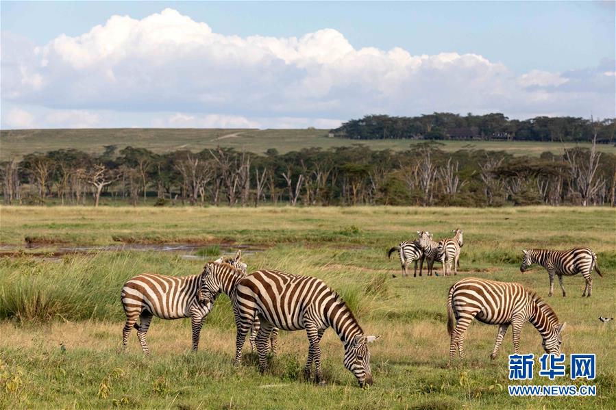 12月30日,斑馬在肯尼亞納庫魯國家公園內(nèi)覓食。 新華社記者 王騰 攝
