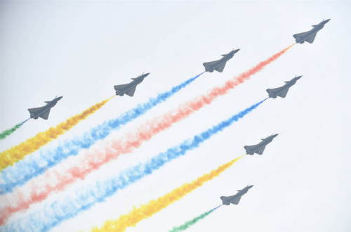 2019年10月1日,慶祝中華人民共和國成立70周年大會在北京天安門廣場隆重舉行。這是受閱的領隊機梯隊。新華社記者薛玉斌攝