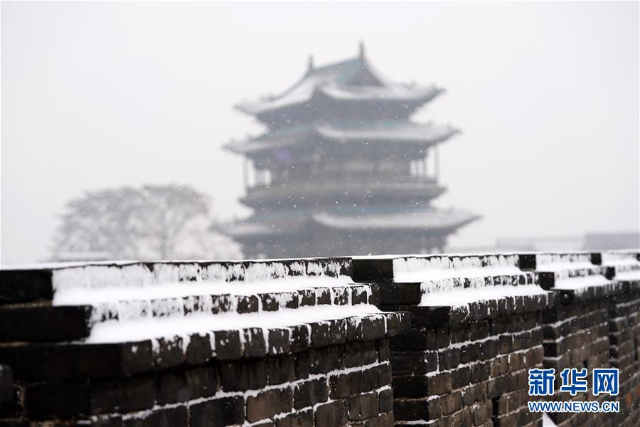 1月5日拍攝的平遙古城迎薰門城樓和城墻。新華社記者詹彥攝