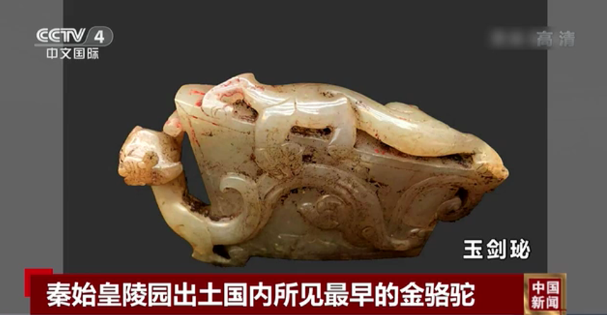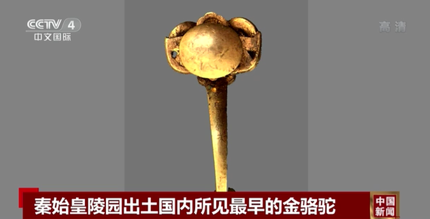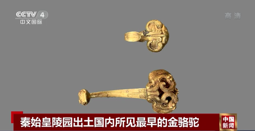 出土的金駱駝是目前國內(nèi)所見最早的單體金駱駝。這些出土器物不僅為漢代絲綢之路開通以前,中西文化交流提供了重要依據(jù),也為秦代政治、經(jīng)濟、軍事、科技、文化等研究提供了重要的實物材料。
