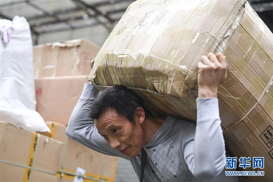 冉光輝在重慶朝天門搬運貨物(1月5日攝)。新華社記者王全超攝