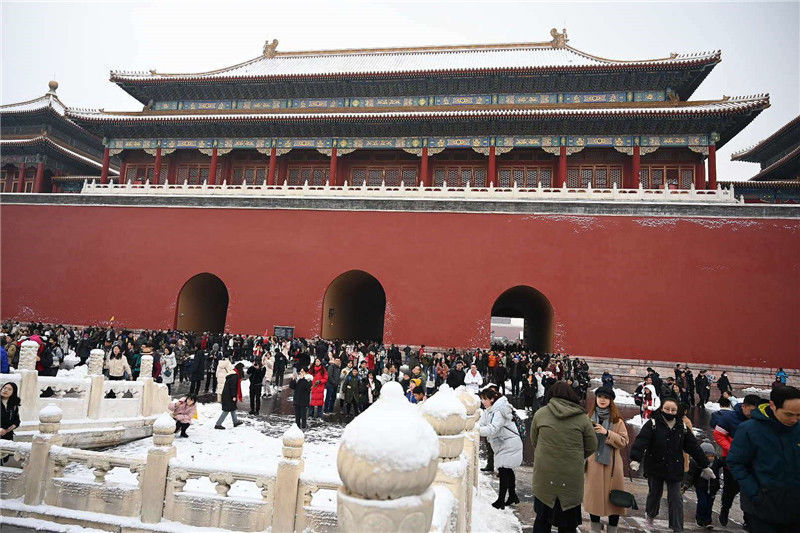 2019年11月30日,北京,一場(chǎng)初雪后,城市銀裝素裹,故宮博物院迎來(lái)今年第一批賞雪游客。