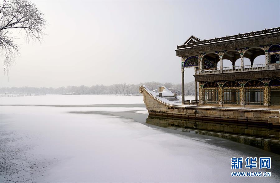 1月6日拍攝的頤和園石舫及昆明湖雪景。1月5日晚,北京迎來2020年首場降雪。雪后的頤和園景色迷人,宛若畫卷。新華社記者陳建力攝