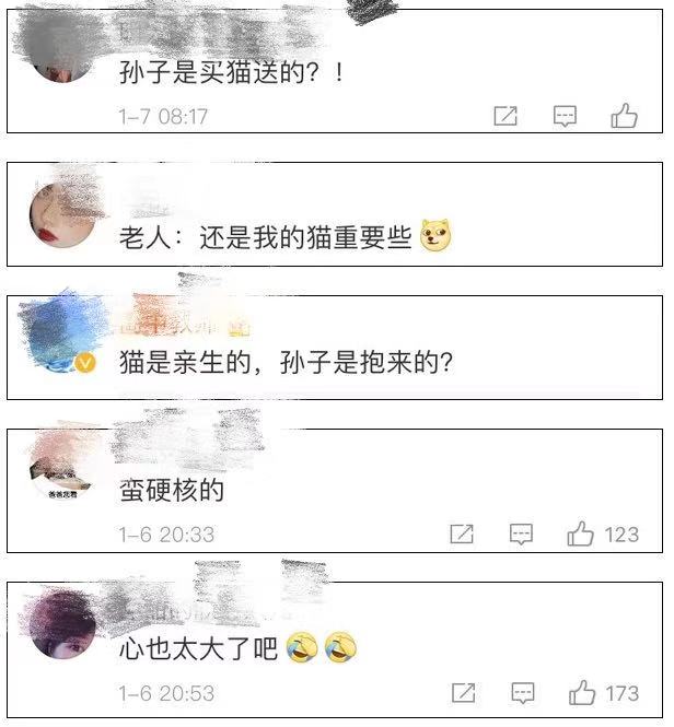看到這一幕的網(wǎng)友忍不住調(diào)侃:難道孫子是奶奶買(mǎi)貓送的?