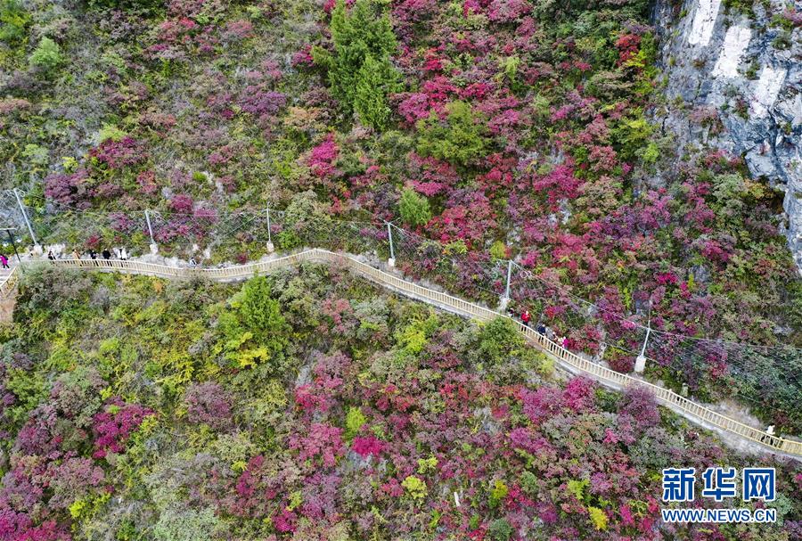 2019年11月23日,游客在位于長江巫峽段的重慶巫山文峰景區(qū)游覽(無人機(jī)照片)。新華社記者王全超攝