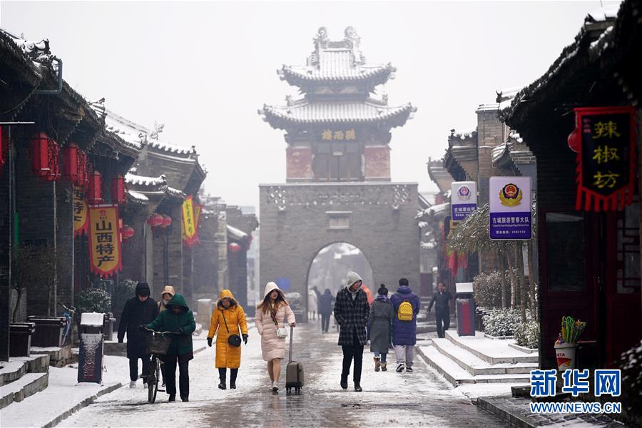 當(dāng)日,山西省平遙縣迎來降雪,雪中的平遙古城銀裝素裹,美景如畫。平遙古城是目前中國保存最完整的古代縣級(jí)城池之一,1997年被列入世界文化遺產(chǎn)名錄。