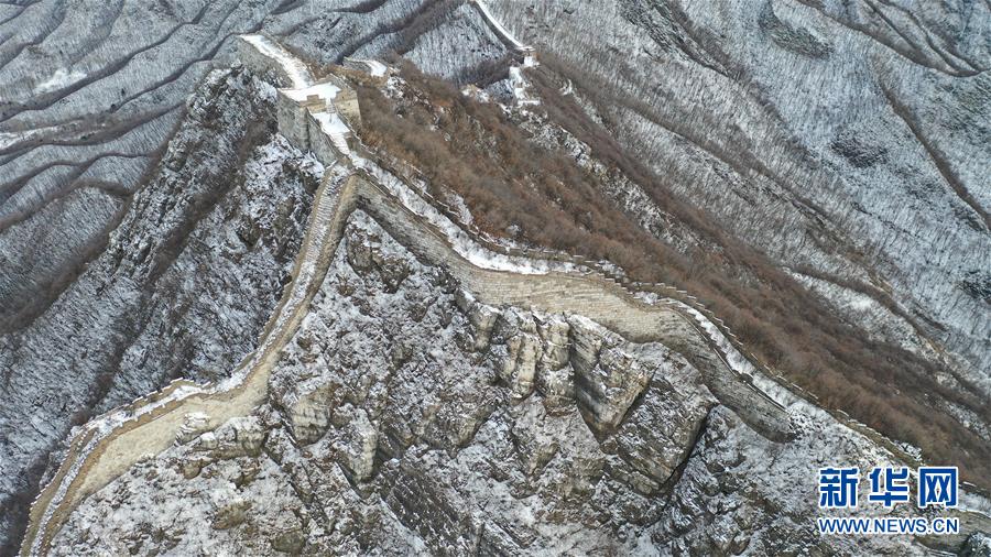 這是1月7日拍攝的北京箭扣長(zhǎng)城雪景(無(wú)人機(jī)照片)。 新華社記者 陳曄華 攝
