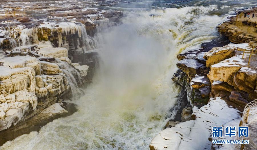 1月12日拍攝的黃河壺口瀑布主瀑(無人機(jī)照片)。新華社記者陶明攝