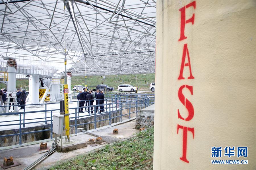 1月11日,專(zhuān)家學(xué)者對(duì)“中國(guó)天眼”進(jìn)行考察(檢修期間拍攝)。新華社記者劉續(xù)攝