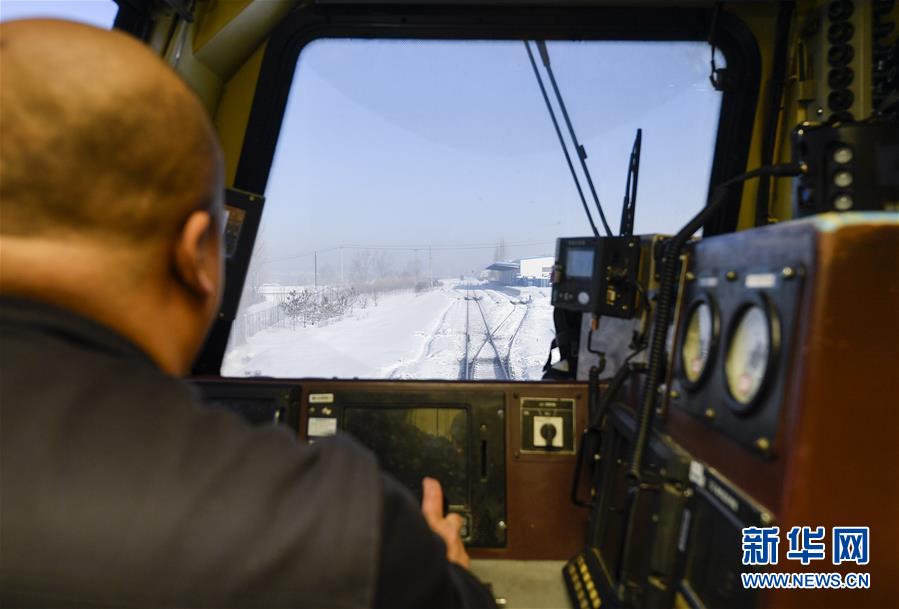 臨近送水地點,送水員黃衛(wèi)東指揮列車前往??奎c(1月17日攝)。新華社記者許暢攝