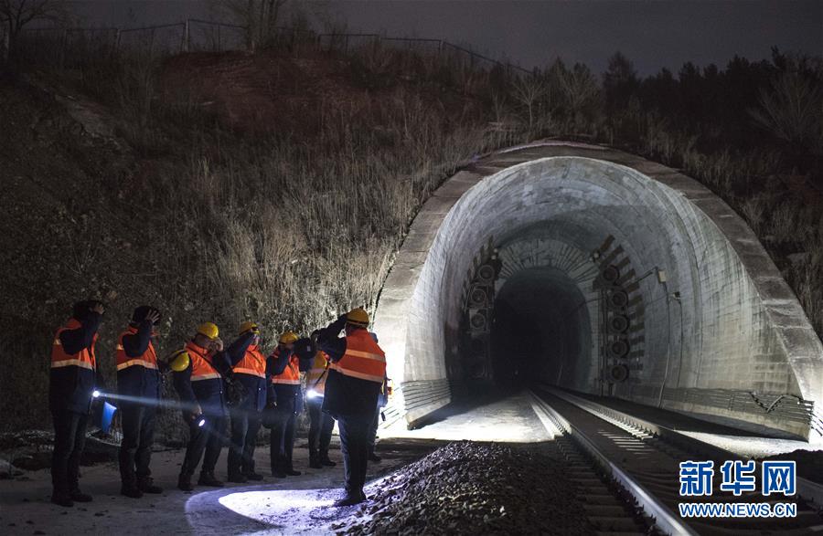 通化通信車間無線工區(qū)鐵路通信工人步行前往隧道內(nèi)作業(yè)地點(1月10日攝)。2020年春運1月10日拉開帷幕。無數(shù)旅客平安出行的背后,是無數(shù)基層鐵路工人的付出和堅守,中國鐵路沈陽局集團有限公司吉林電務段通化通信車間無線工區(qū)的鐵路通信工人便是其中之一。他們在長白山區(qū)飲風踏雪,為保障轄區(qū)隧道內(nèi)鐵路通信信號傳輸全天候暢通而日夜奔行。新華社記者許暢攝