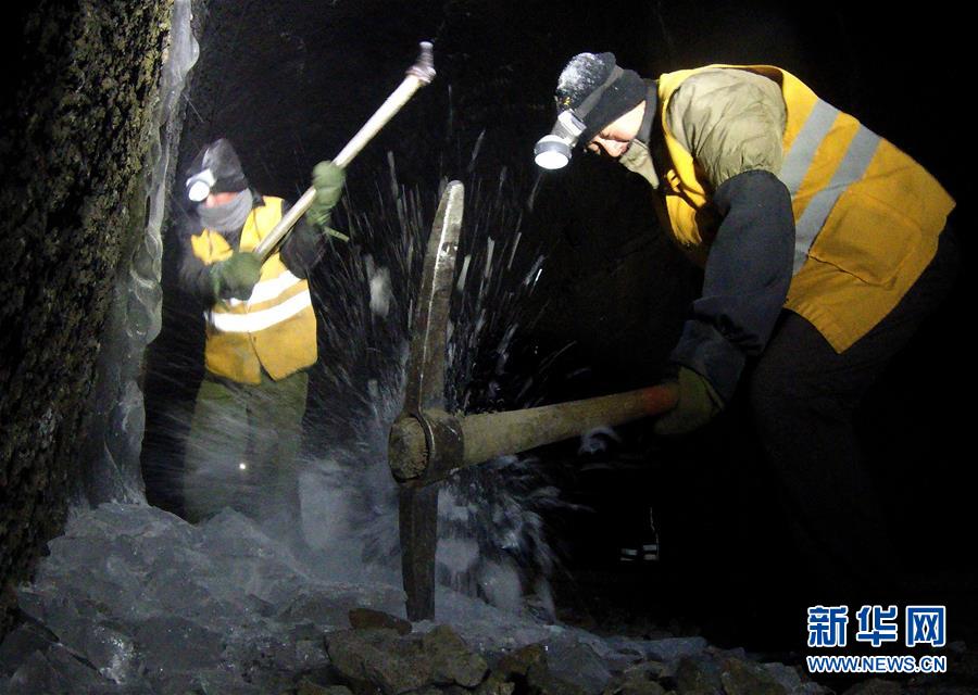 1月7日,在加格達奇工務段西羅奇嶺二號隧道,西羅奇維修工隊工作人員進行隧道除冰作業(yè)。新華社記者王毓國攝