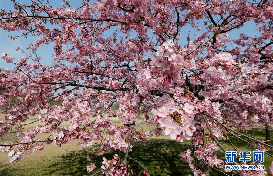 2月24日,蜜蜂在上海松江辰山植物園內(nèi)盛開(kāi)的河津櫻櫻花叢中飛舞。近日,上海松江區(qū)辰山植物園內(nèi)的河津櫻絢麗綻放,花團(tuán)錦簇間一派盎然春意。 新華社記者 方喆 攝