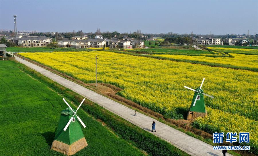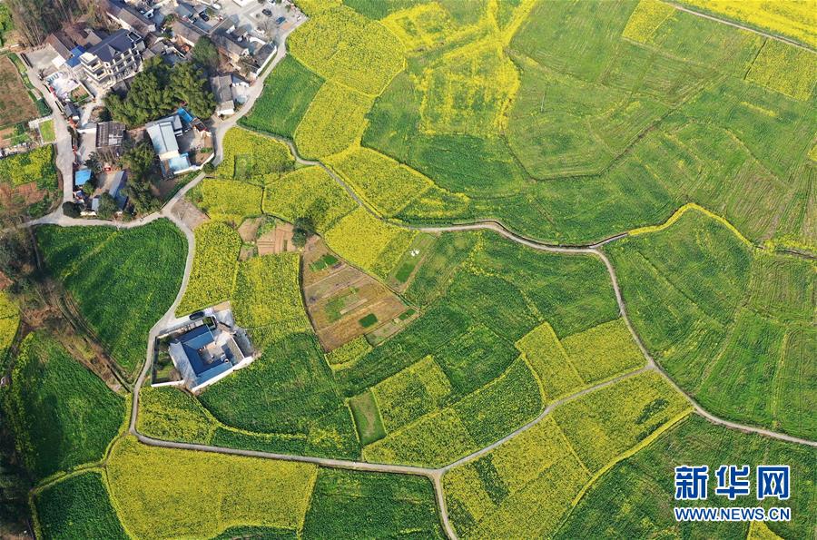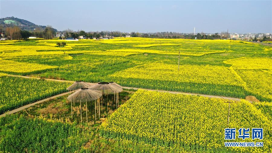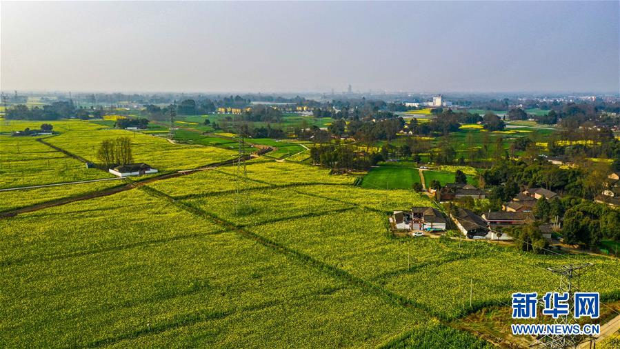2月25日在四川省崇州市農業(yè)產(chǎn)業(yè)功能區(qū)拍攝的油菜花田(無人機照片)。 新華社記者 王曦 攝