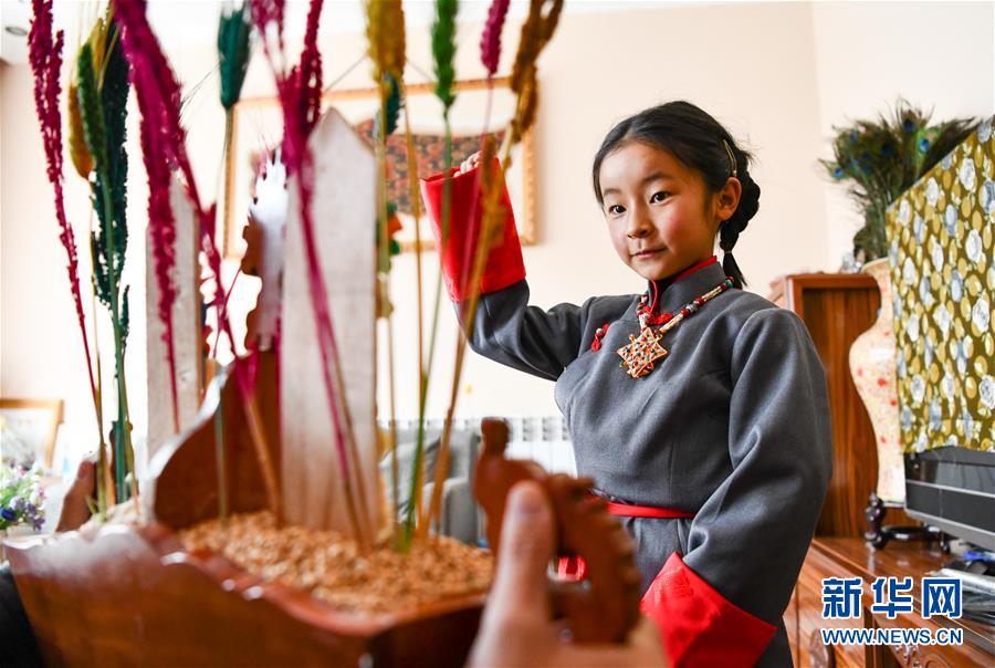 一名身著藏裝的藏族小姑娘在吃切瑪(2月24日攝)。當(dāng)日是藏歷新年初一,西藏各地群眾歡度藏歷新年。受新冠肺炎疫情影響,當(dāng)?shù)靥岢娫挵菽?、少出門、不聚集,居家享受新年樂(lè)趣。新華社記者晉美多吉攝
