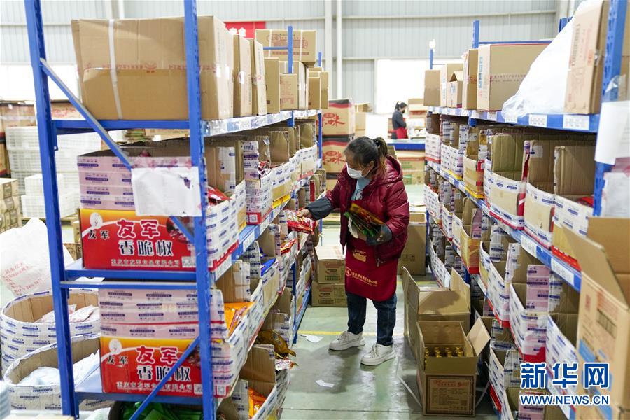 2月27日,在秀山(武陵)現(xiàn)代物流園區(qū)的電商云倉內(nèi),工人在按照訂單配貨。地處重慶市秀山縣的秀山(武陵)現(xiàn)代物流園區(qū),是渝湘黔三省市交界地區(qū)的區(qū)域性物流中心。重慶市秀山縣在做好新冠肺炎疫情防控工作前提下,當?shù)卣e極幫助電商、物流企業(yè)解決招工、運輸、銷售等方面的實際問題,推動秀山(武陵)現(xiàn)代物流園區(qū)快速進入全面復工復產(chǎn)階段。據(jù)介紹,隨著物流園區(qū)的電商和物流企業(yè)全面復工復產(chǎn),既滿足當?shù)厝罕姷奈镔Y供應(yīng),又幫助當?shù)剞r(nóng)產(chǎn)品通過電商平臺實現(xiàn)快速銷售。新華社記者劉潺攝