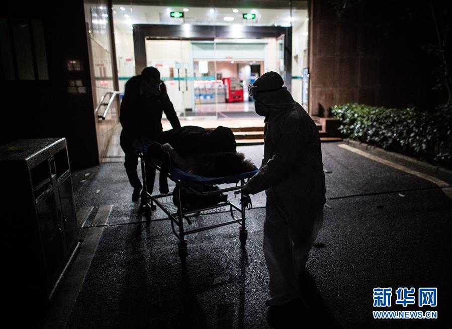 2月29日凌晨,王震(右一)協(xié)助將產婦劉婷送至CT室做產前檢查。新華社記者 肖藝九 攝