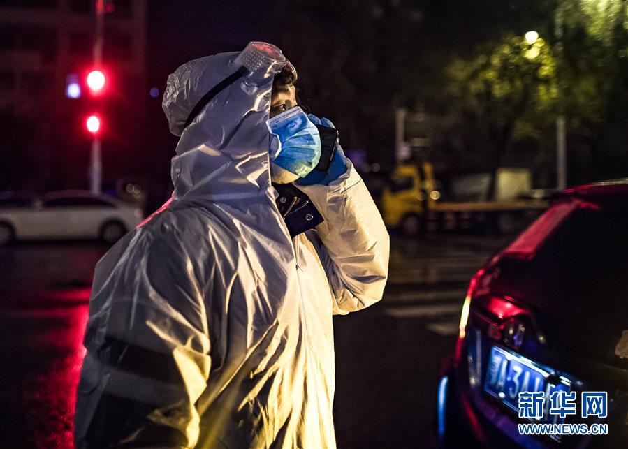 2月29日凌晨,王震接上產婦劉婷后駕車前往武漢市婦幼保健院。新華社記者 肖藝九 攝