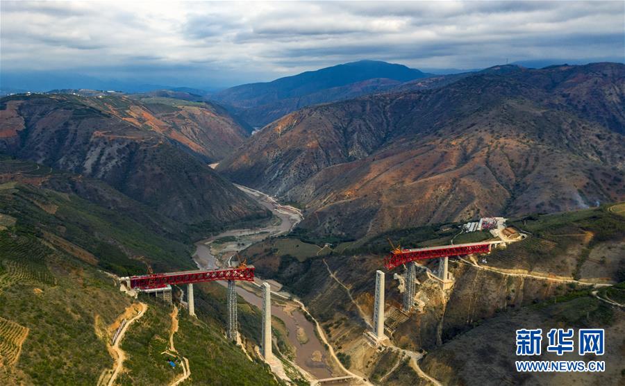 3月5日,空中俯瞰建設(shè)中的中老鐵路元江特大橋(無人機(jī)照片)。近期,中老鐵路玉溪至磨憨段有序復(fù)工復(fù)產(chǎn),由中鐵四局承建的中老鐵路全線重點(diǎn)控制性工程——元江特大橋、南溪河特大橋正在加緊施工建設(shè)。新華社記者 江文耀 攝
