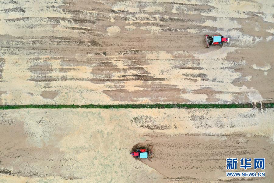 江西省南昌市南昌縣蔣巷鎮(zhèn)農(nóng)民駕駛拖拉機(jī)進(jìn)行春耕翻地作業(yè)(無(wú)人機(jī)照片,2月28日攝)。新華社記者 彭昭之 攝