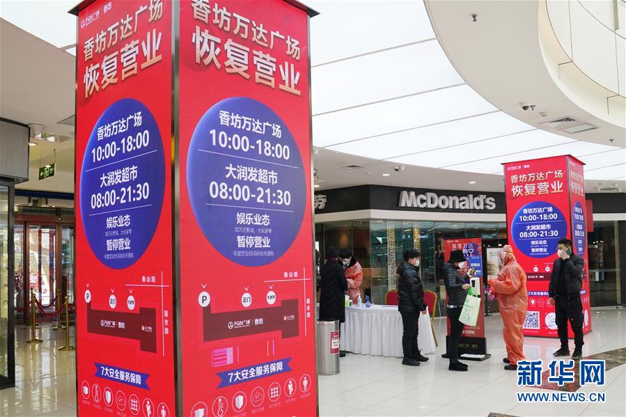 3月13日,在哈爾濱香坊萬達廣場內,工作人員在給進店顧客測體溫、消毒。 近日,哈爾濱市多家大型商場陸續(xù)恢復營業(yè)。這些恢復營業(yè)的商場采取多種措施,從嚴細致做好疫情防控和安全風險防范工作,為廣大顧客提供安全放心的購物空間。 新華社記者 王建威 攝