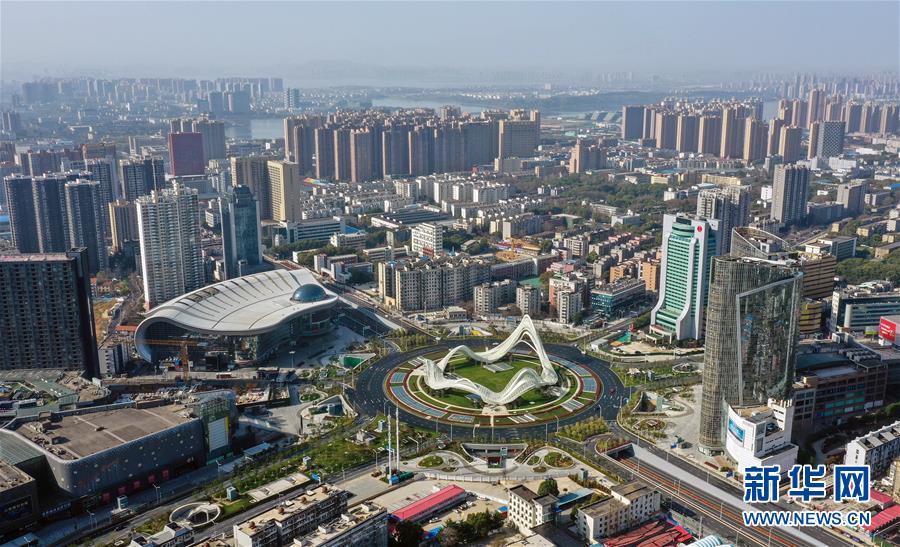 這是3月15日拍攝的武漢光谷廣場及周邊樓房(無人機(jī)照片)。 3月15日,江城武漢天氣晴好,整個城市沐浴在和煦的春光中。 新華社記者 李賀 攝