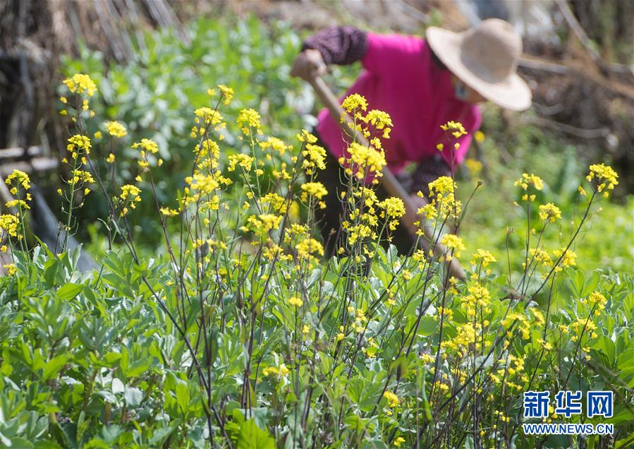 3月14日,在武漢市西北部市郊,一名市民在油菜花田間勞作。隨著氣溫升高,春意在武漢的枝頭上萌動(dòng),花朵漸次開(kāi)放。新華社記者肖藝九攝