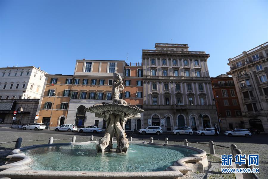 3月16日,在意大利首都羅馬,出租車在巴貝里尼廣場(chǎng)一處出租車??奎c(diǎn)排隊(duì)等候。新華社記者程婷婷攝