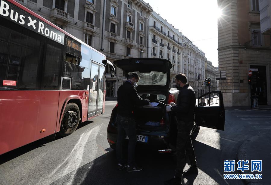3月16日,在意大利首都羅馬,兩名便衣警察查驗(yàn)人們出行的“自我聲明”以及身份證件。新華社記者程婷婷攝