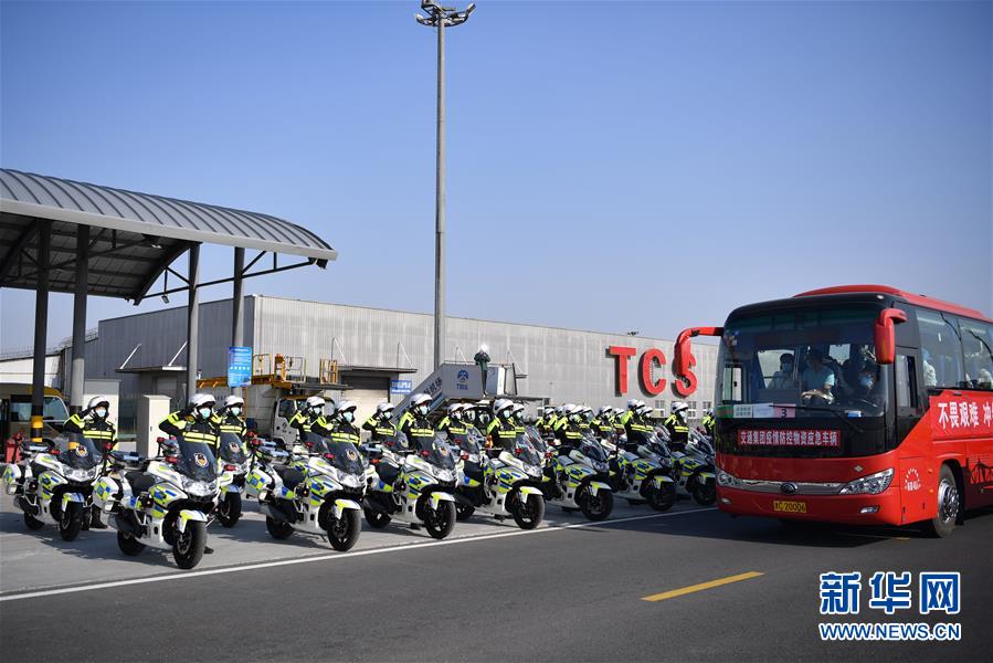3月17日,醫(yī)療隊(duì)隊(duì)員乘坐大巴車離開天津?yàn)I海國際機(jī)場。新華社記者李然攝